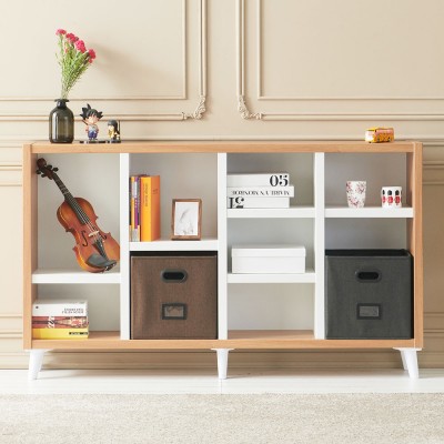 우디 다용도 수납장 원목 인테리어 가로형 책장 8칸 1color