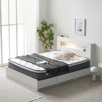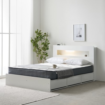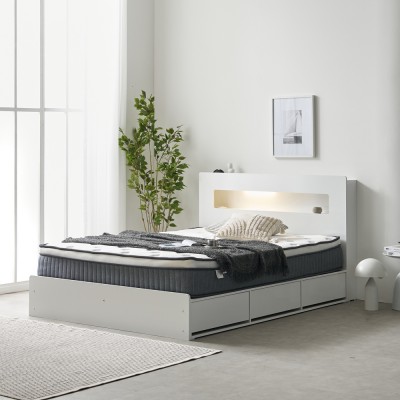 프리렌 호텔식 템바보드 LED 조명 수납 침대 프레임 Q A형 (3color)
