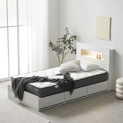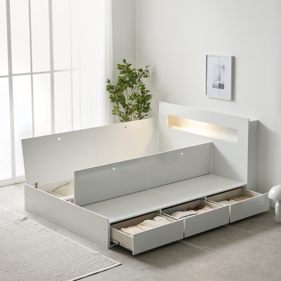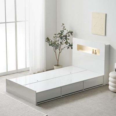 프리렌 호텔식 템바보드 LED 조명 수납 침대 프레임 SS B형 (3color)