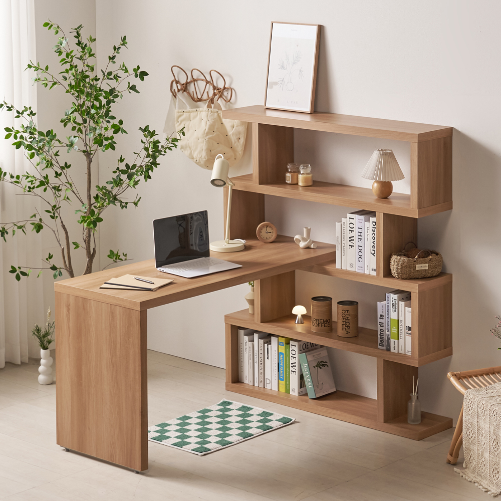 엘바 코너형 ㄱ자 L자 데스크 5단 ㄹ자 책장 책상 세트 1400 2color